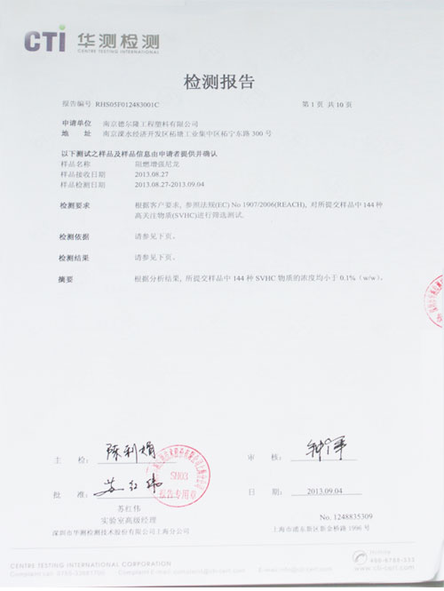 • 增強(qiáng)尼龍、阻燃尼龍等產(chǎn)品通過(guò)SGS國(guó)際環(huán)保認(rèn)證。